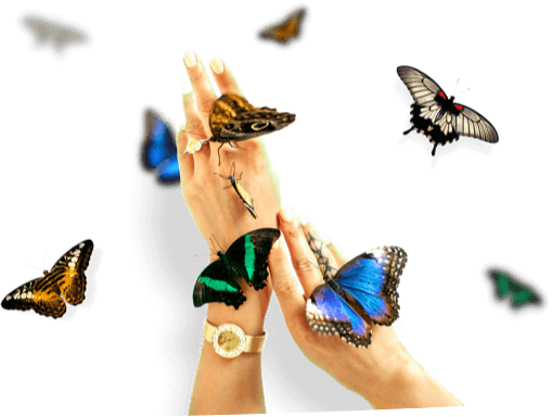 Красивейшие живые тропические бабочки разных цветов и размеров.